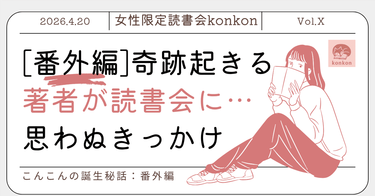 こんにちは。横浜読書会konkon主催の栞です。 前回の話:『【ボツ案公開】ネーミング・ロゴ迷走の黒歴史』。 こちらは番外編です。本日は、本編連載の合間を縫って、どうしてもお伝えしたい「大切でとても嬉しいお知らせ」があります。 連載の続きは、明日更新になります。 友達ゼロから女性限定コミュニティ作り|横浜読書会誕生秘話|横浜読書会konkon(こんこん)|note 関東に友人ゼロ。横浜へ越してきた人見知り20代女性が、「居場所がほしい」と決意し、1時間で満席になる女性コミュニティを作る note.com YUTA.さんをお招きする特別な企画 以前、書評を書